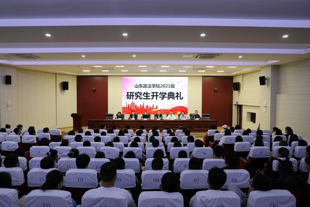 2021年9月28日,山东政法学院举行2021级硕士研究生开学典礼。吕涛校长致辞,刘炳君副校长主持典礼。研究生理论导师代表、刑事司法学院院长马凤春教授和老生代表刘君玮同学、新生代表李乃玉同学分别发言。研究生处处长肖立梅、法学院院长窦衍瑞、民商法学院院长刘涛、经济贸易法学院院长唐倩和2021级全体研究生参加典礼。