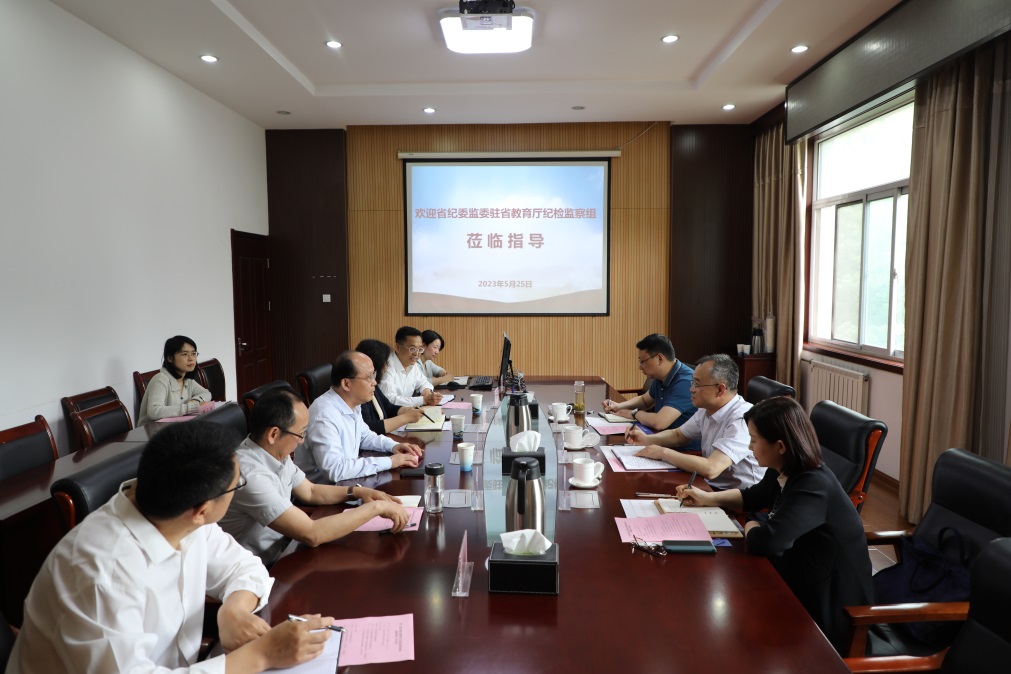 5月25日上午,省纪委监委驻省教育厅纪检监察组组长于洪宁,副组长、一级调研员李华,一级主任科员李龙来校调研座谈。学校党委副书记赵斌,纪委书记、监察专员王瑛参加座谈会。