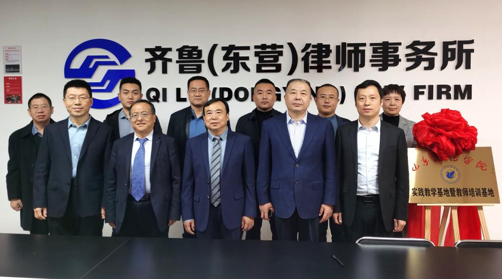 10月25日,山东政法学院党委委员、副院长窦衍瑞一行5人赴山东齐鲁(东营)律师事务所调研座谈,开展实践教学基地、教师培训基地、课程思政育人基地揭牌签约活动。