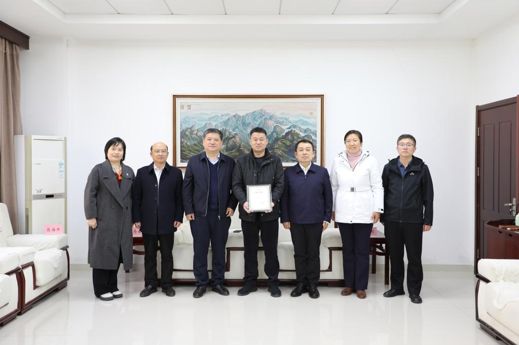 王效彤为马士振校友颁发捐赠证书,对马士振校友的深情厚谊与慷慨之举致以衷心感谢。他表示,校友是母校的宝贵财富,马士振校友事业有成后反哺母校的行为,彰显了山政人饮水思源、大爱无疆的情怀,为广大校友树立了榜样。