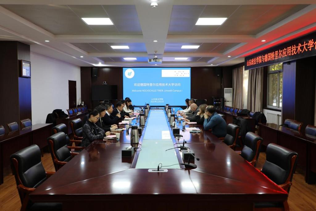 12月2日,德国特里尔应用技术大学应用物质流管理研究院院长皮特·海克、应用物质流管理研究院中国项目经理尤利娅·施密特等一行5人到访我校。山东政法学院院长王效彤出席座谈会。会议由党委委员、副院长胡晓清主持。