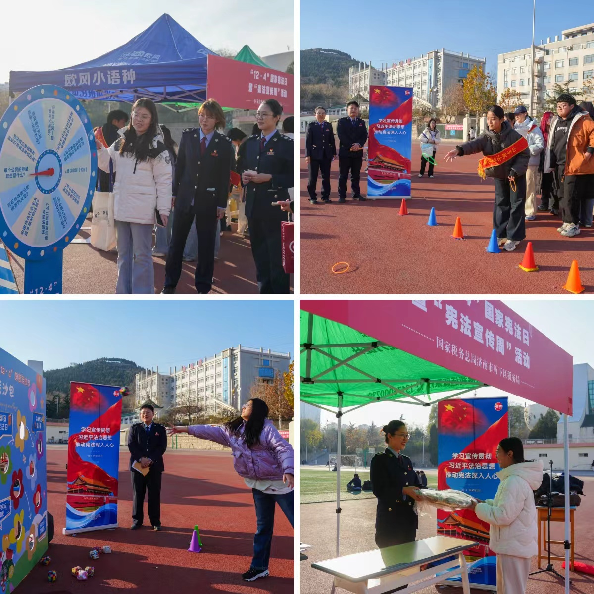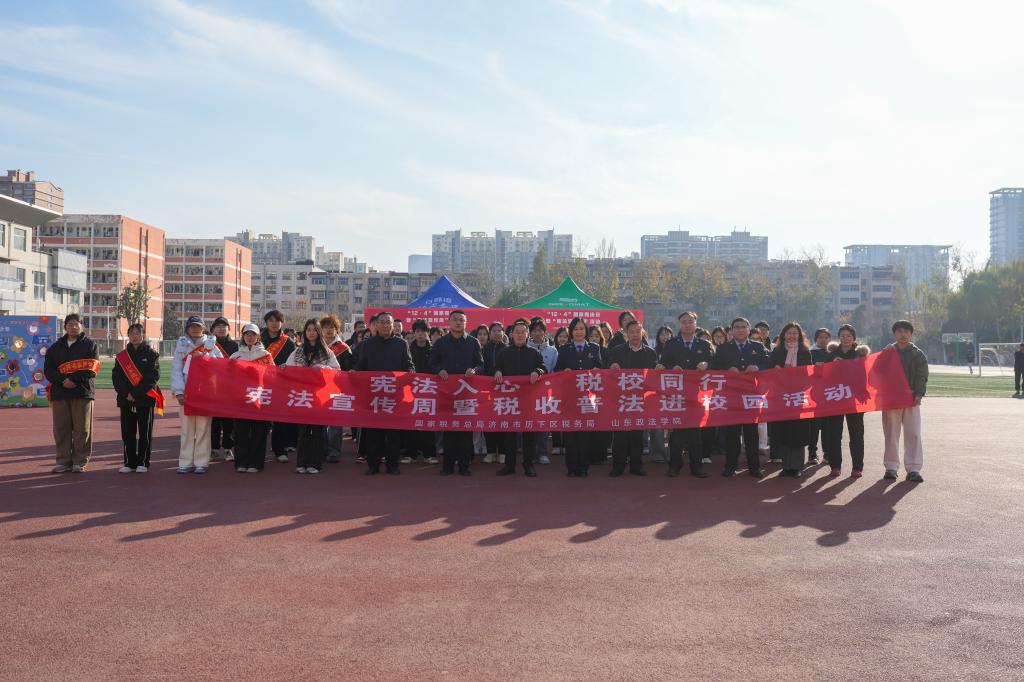 在第十二个国家宪法日暨第八个宪法宣传周来临之际,为深化校园法治文化建设、涵养青年学生宪法精神,12月4日,山东政法学院商学院联合国家税务总局济南市历下区税务局,共同举办“宪法入心·税校同行”宪法宣传周暨税收普法进校园活动。山东政法学院党委委员、副院长林爽,历下区税务局党委书记、局长曲笛出席活动并致辞。历下区税务局党委委员、副局长范玉民、办公室主任贺峰,商学院党委书记刘涛、院长孙建全、副书记苑锦锋和师生代表等100余人参加活动。