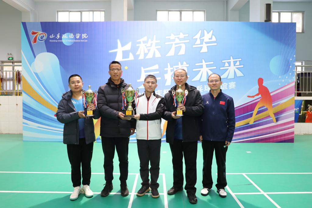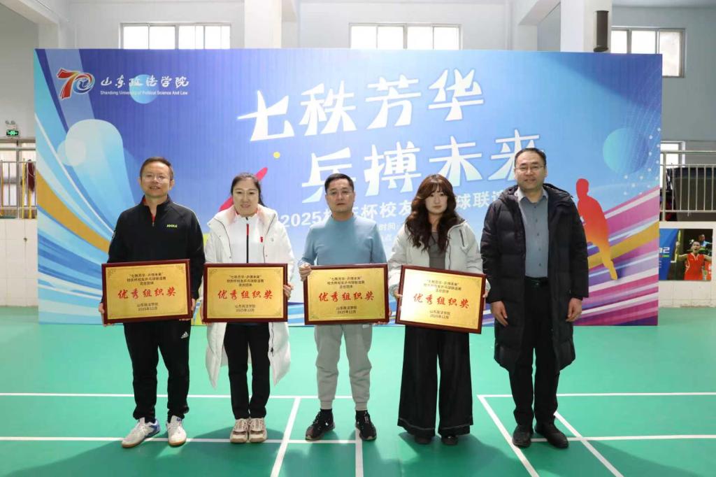 七秩弦歌催奋进,乒乓跃动聚同心。为献礼山政70周年华诞,凝聚校友与母校的深情厚谊,传承弘扬山政人拼搏进取、昂扬向上的意志品质,12月14日,山东政法学院举办“七秩芳华,乒搏未来”校庆杯校友乒乓球联谊赛。来自各地市由校友组成的11支代表队与教工、学生代表队以球会友、切磋竞技,为校庆献上一场精彩纷呈的体育赛事。山东政法学院院长王效彤,党委委员、副院长孙会海,党委委员、副院长蒋海升出席活动。学校招生就业处、体育教学部有关负责同志参加活动。