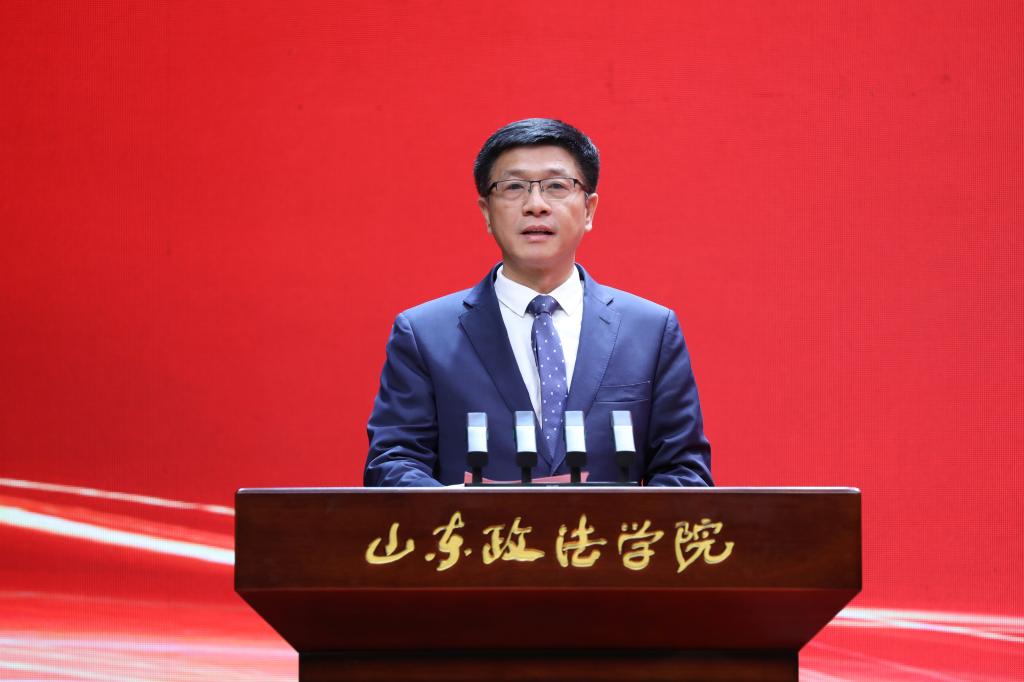 济南市委常委、宣传部部长,市委教育工委书记马保岭代表济南市委、市政府致辞。他指出,山东政法学院与济南城市发展血脉相连、共生共长,为济南的法治建设和社会进步作出了突出贡献。他表示,济南市将持续优化校地融合长效机制,全力支持学校高质量发展,并希望学校未来能将更多人才与智慧播撒在泉城,共创美好明天。
