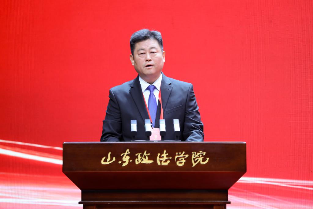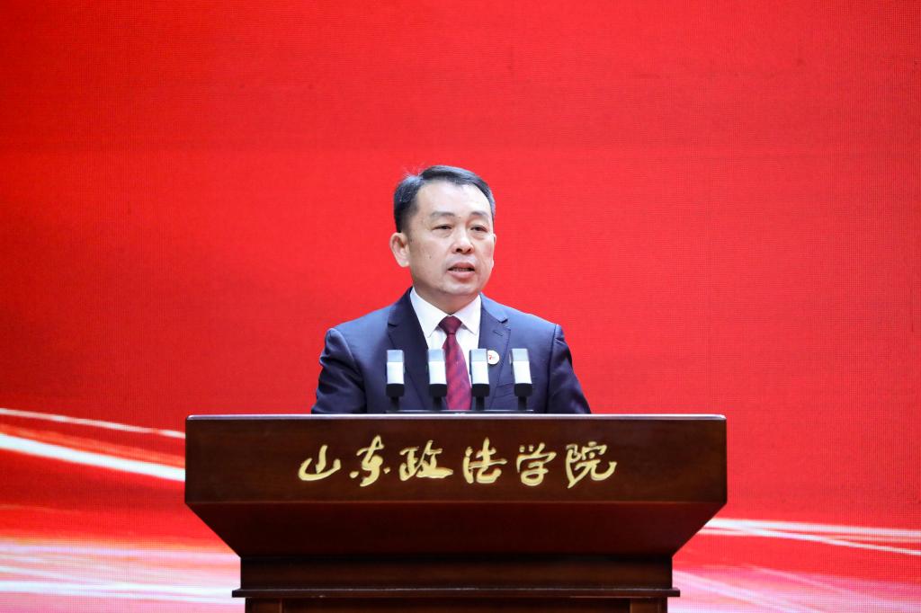 山东政法学院党委书记张祥云以《奋进七秩 再启新程》为题,作学校事业发展报告。他深情回顾了学校自1955年创立以来,从干部培训到成人教育,从普通本科院校到硕士学位授予单位的发展历程。张祥云从“党建引领、红色铸魂”“夯实内涵、特色立校”“德学并蓄、桃李芬芳”“融合赋能、奋发有为”四个方面,系统总结了学校在党的建设、学科发展、人才培养、社会服务等领域取得的显著成就。党的二十届四中全会绘就了中国未来五年发展的宏伟蓝图,全面依法治国战略向纵深推进,教育强国、教育强省建设加速推进。站在新的历史起点上,学校将坚持以习近平新时代中国特色社会主义思想为指导,全面贯彻党的教育方针,落实立德树人根本任务,始终做到政治坚定、对党忠诚,为党育人、为国育才,立足特色、争创一流,扎根齐鲁、服务大局,朝着建设新时代高水平政法类大学的目标奋勇前行。