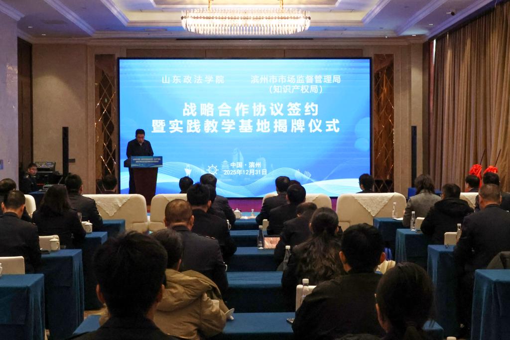 近日,山东政法学院院长王效彤,党委委员、副院长胡晓清一行赴滨州市市场监督管理局(知识产权局)开展战略合作和共建研究生联合培养基地、实践教学基地活动。滨州市副市长杜玉杰出席活动。