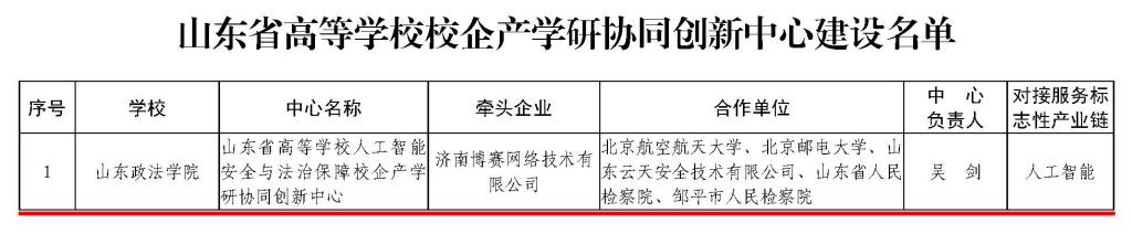 近日,山东省教育厅、山东省工业和信息化厅联合发布《山东省高等学校校企产学研协同创新中心建设名单》,山东政法学院网络空间安全学院申报的“山东省高等学校人工智能安全与法治保障校企产学研协同创新中心”项目成功入选。