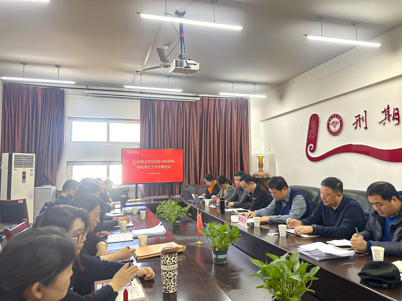 1月13日,山东政法学院2025-2026学年寒假学生工作专题会议在刑事司法学院会议室召开,研究部署寒假期间学生管理服务工作,为新学期学生工作谋篇布局。党委委员、副院长蒋海升出席会议并讲话。学生工作处、招生就业处(创新创业学院)、团委负责人及研究生处、各二级学院学生工作负责人参加会议。