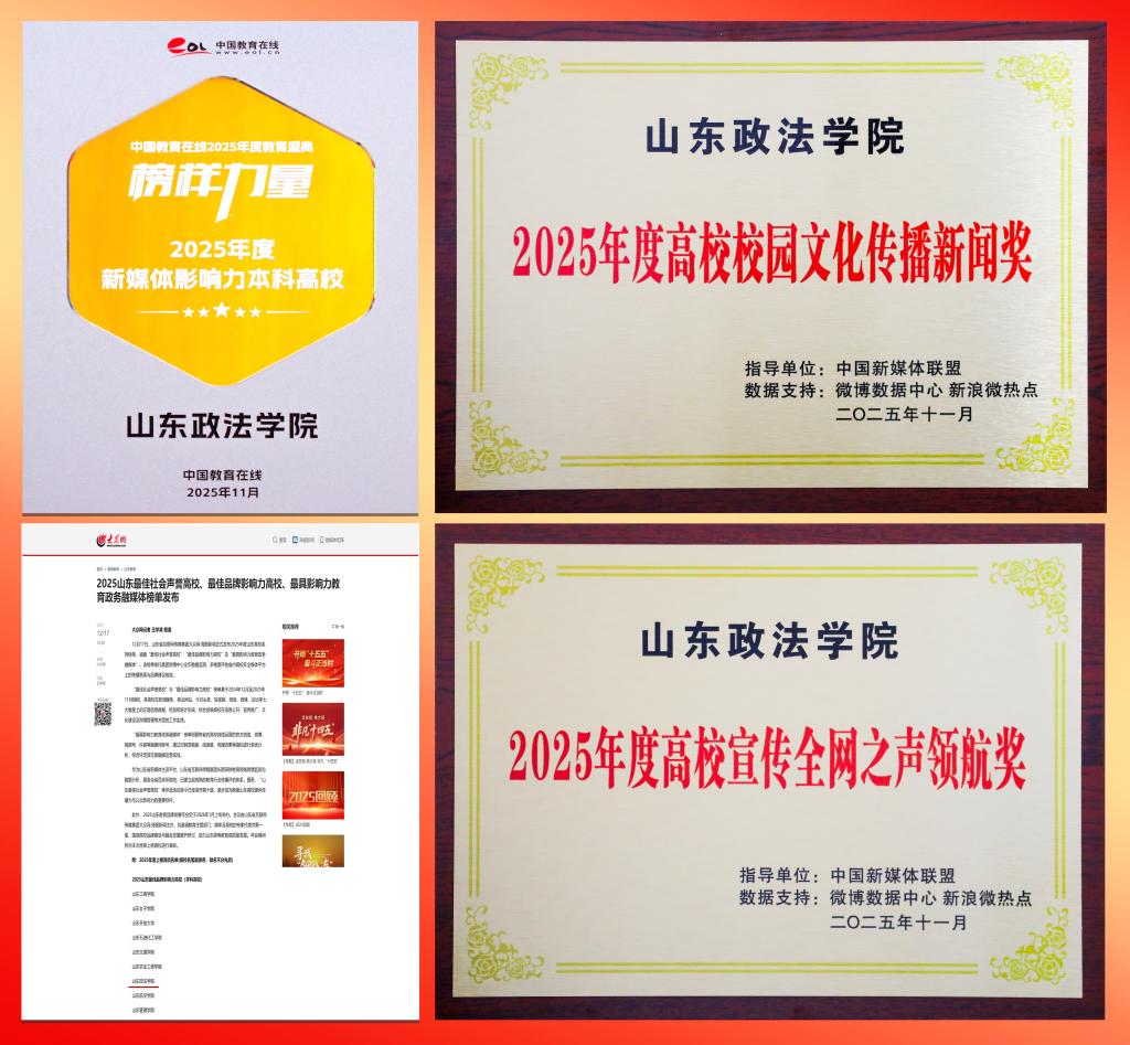 此外,学校2025年新闻宣传工作获得多个奖项,荣获中国教育在线“2025年度新媒体影响力本科高校”称号,中国新媒体联盟“2025年度高校校园文化传播新闻奖”“2025年度高校宣传全网之声领航奖”,山东省互联网传媒集团大众网·海报新闻“2025山东最佳品牌影响力高校”称号等多项荣誉,学校社会影响力、美誉度、知名度持续提升。