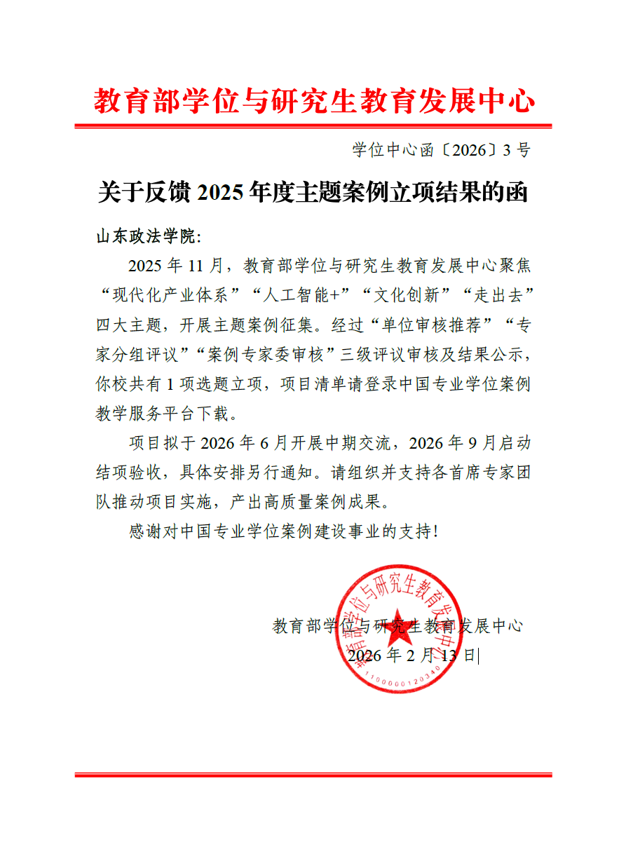 山东政法学院获教育部学位与研究生教育发展中心2025年度主题案例征集立项