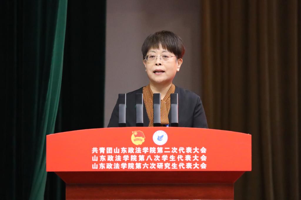 盛夏代表共青团山东省委向大会的召开表示热烈祝贺,对学校高质量发展和共青团工作给予充分肯定。他对全校各级团组织和团员青年提出四点希望:一要紧扣“政治学校”功能定位,强化理论武装,引领青年学子坚定不移听党话、跟党走,争做新时代好青年;二要扛牢“先锋力量”使命职责,发挥法学专业优势,擦亮法治服务品牌,激励青年学子勇当法治建设的排头兵和生力军;三要发挥“桥梁纽带”关键作用,聚焦青年急难愁盼,争做青年学子成长成才的贴心人和引路人;四要聚焦“先进组织”建设目标,深化团学改革,坚持从严治团、从严治会,锻造过硬队伍、树立清新形象。希望全校团员青年胸怀法治理想、勤学笃行、担当实干,努力成长为德法兼修的高素质法治人才,不断开创学校共青团和青年工作新局面,为新时代社会主义现代化强省建设贡献青春力量。
