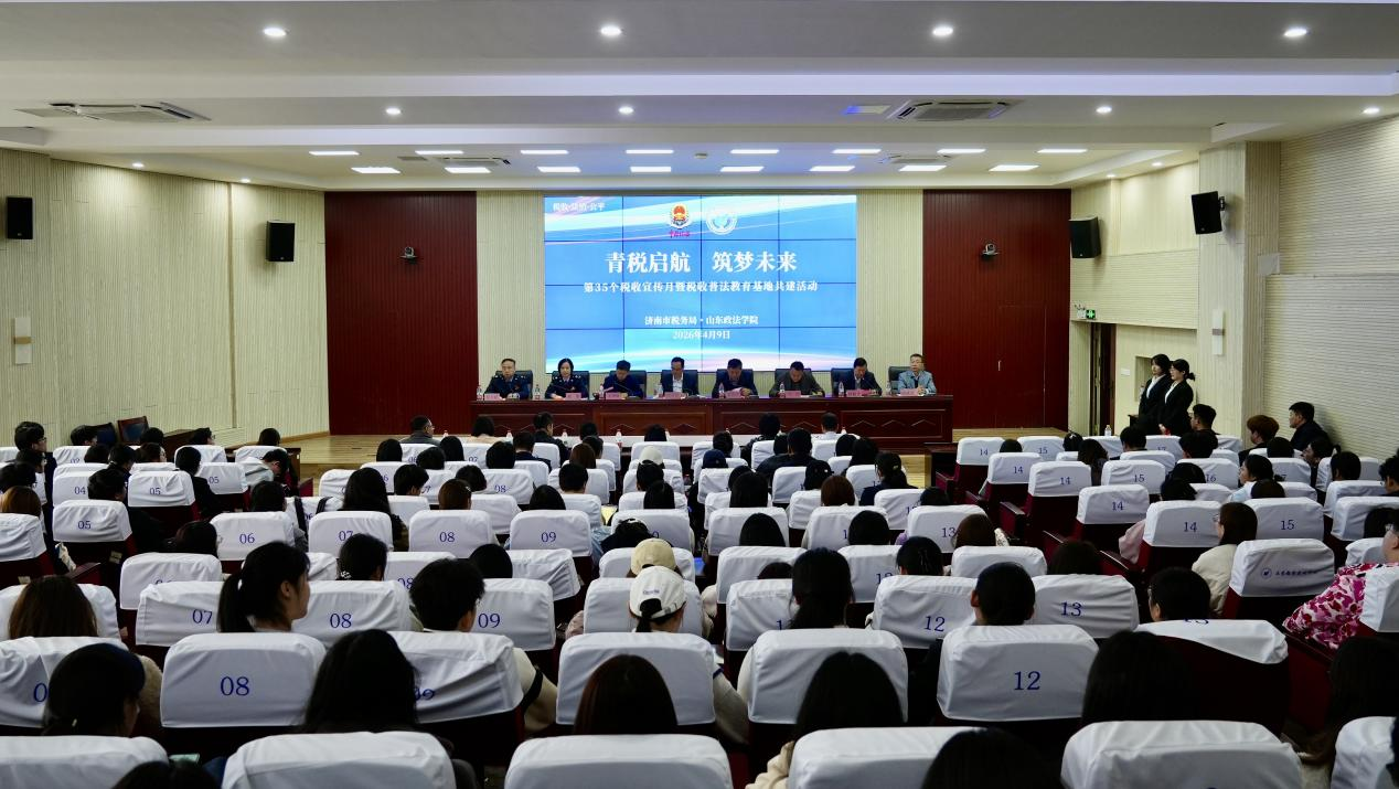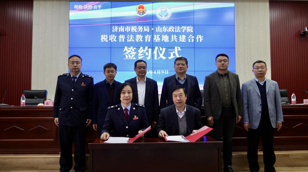 4月9日,在全国第35个税收宣传月启动之际,山东政法学院与济南市税务局于知行楼报告厅举行税收普法宣传教育基地共建签约仪式。山东政法学院党委委员、副院长蒋海升,济南市税务局党委委员、总经济师陈道胜出席活动。