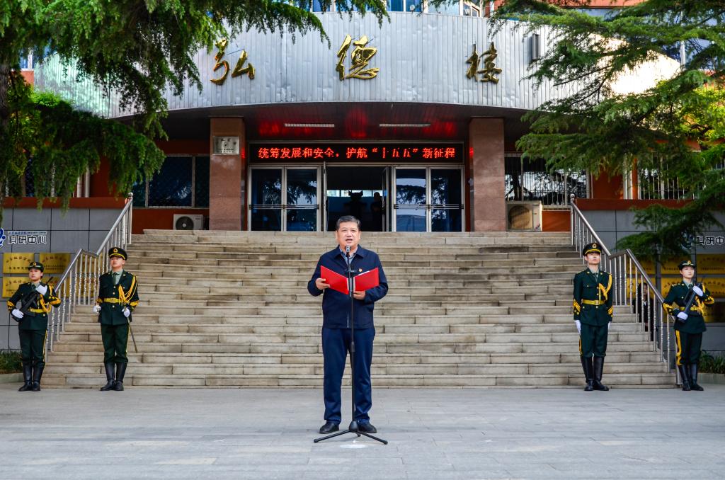 4月15日,山东政法学院举行“全民国家安全教育日”主题升旗仪式,深入贯彻总体国家安全观,强化全校师生国家安全意识。本次活动主题为“统筹发展和安全,护航‘十五五’新征程”,学院党委委员、副院长蒋海升出席活动并致辞。