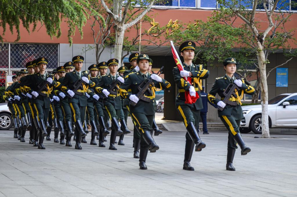 清晨,仪式在庄严肃穆的氛围中启幕。国旗护卫队迈着整齐有力的步伐护送国旗入场,激昂的《义勇军进行曲》奏响,五星红旗冉冉升起,全体师生庄严肃立、行注目礼并高唱国歌。
