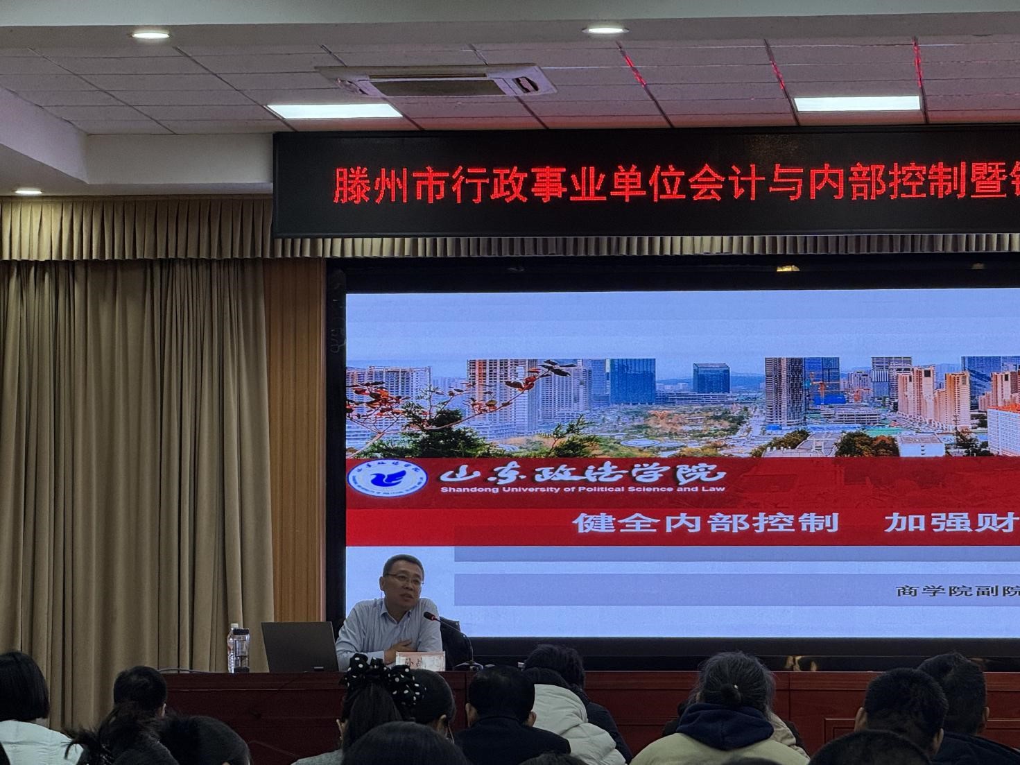 12月4日,滕州市行政事业单位会计与内部控制提升专题培训班在枣庄科技职业学院举办。我校商学院副院长孙战文教授应邀参加并作题为《健全内部控制,加强财会监督》主题报告。