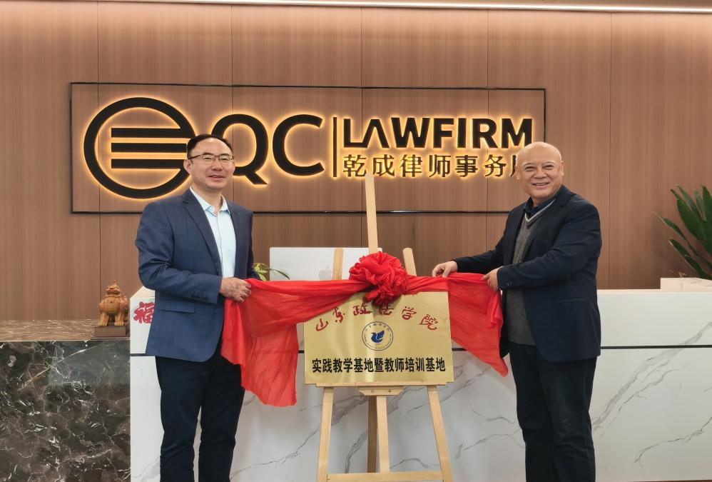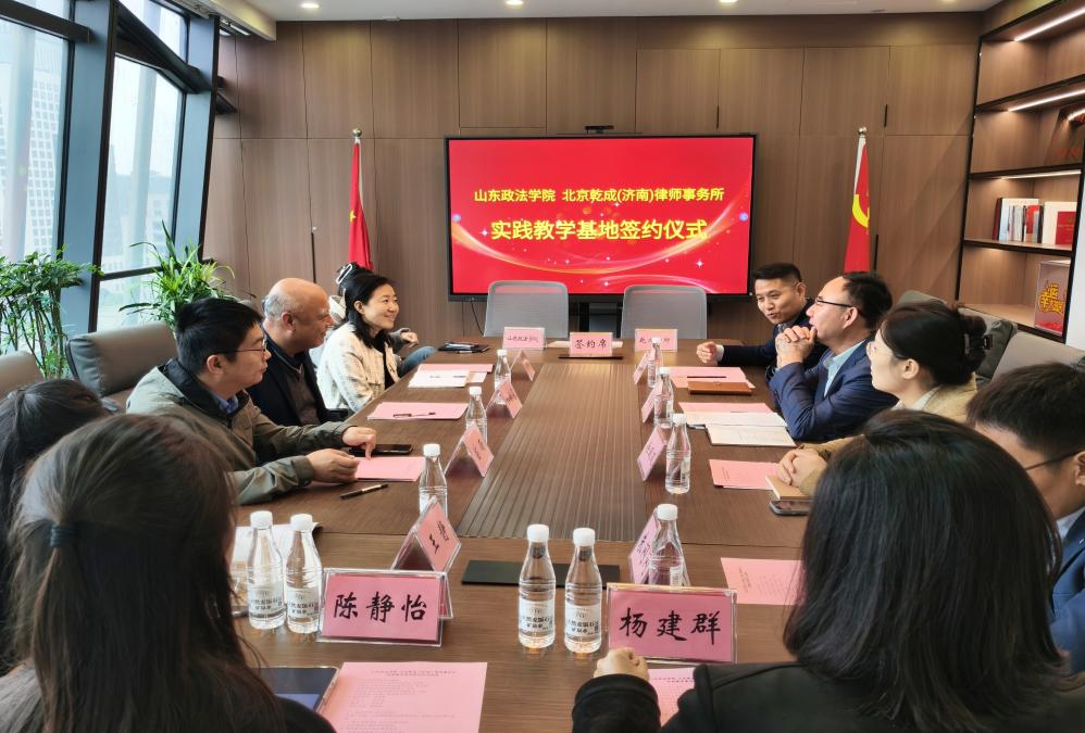10月15日,山东政法学院与北京乾成(济南)律师事务所举行共建实践教学基地暨教师培训基地签约与揭牌仪式。法学院党委书记公续亮、党委副书记李亚楼、副院长苗雨、辅导员王静参加本次活动。