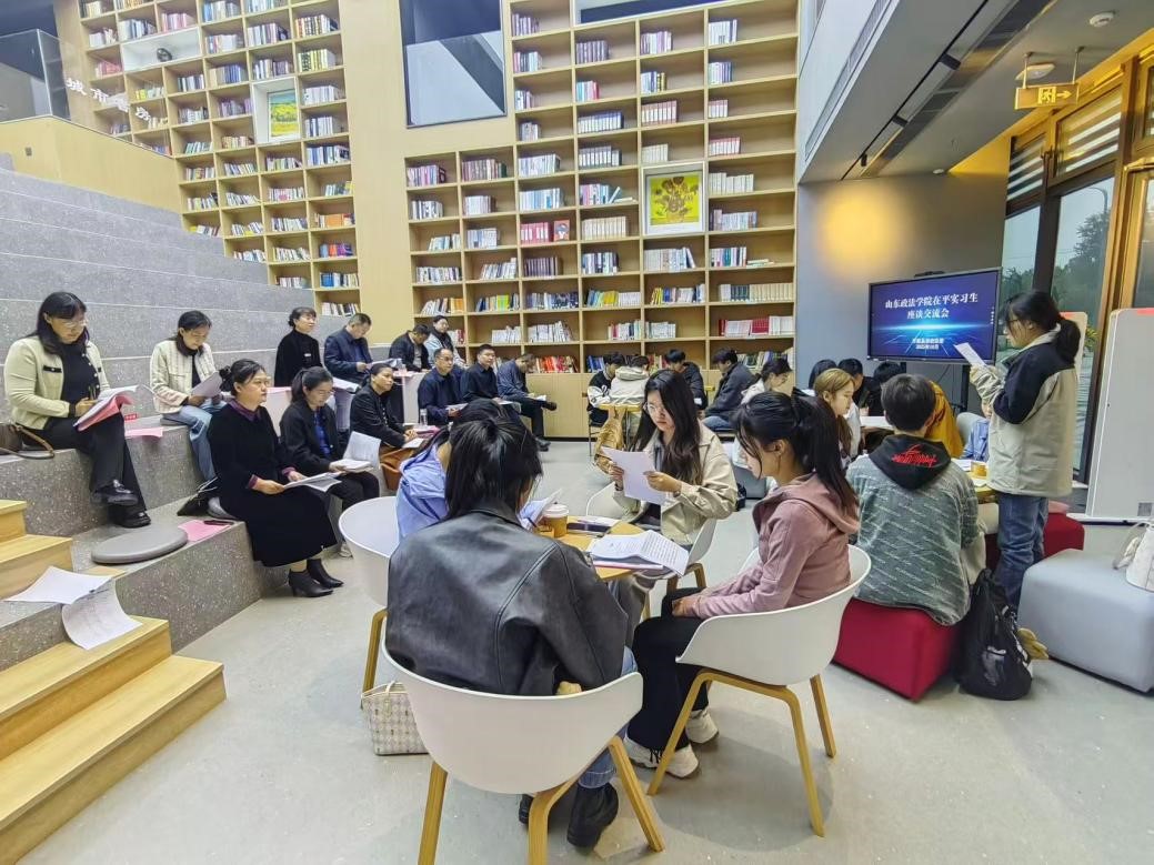 座谈会上,张妍对法学院一行表示热烈欢迎,并向同学们提出宝贵建议,鼓励大家珍惜实习机会。管伟叮嘱同学们珍惜实习机会,严守纪律、勤学善思,将平原实践的所学所感转化为成长的动力,努力成为“德法兼修、服务社会”的高素质法治人才。实习生们踊跃发言,分享了各自沉浸式实习的宝贵经历。从庭审笔录整理中体会程序公正的严谨,到深入社区化解民间纠纷时践行调解技巧,再到卷宗整理与文书撰写过程中深化对证据规则的理解,同学们纷纷表示,这段实务历练让理论知识与实践应用实现深度融合、学到了课本上没教过的本领。平原县各实习单位相关负责人及指导教师对山政学子的综合素质也给予了高度评价,称赞同学们展现出扎实的专业功底与良好的精神风貌。同时,他们结合自身工作经验,以自身经历为同学们送上职业发展建议,鼓励大家继续稳扎稳打,持续精进专业能力。