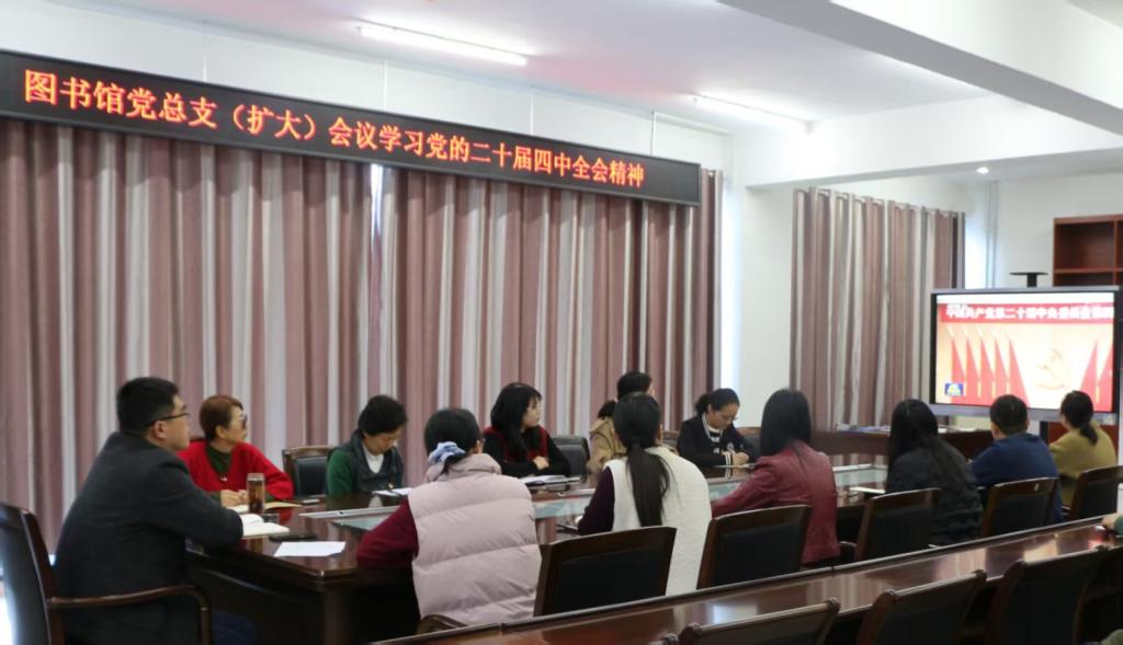 会议强调,要将党的二十届四中全会精神融入图书馆事业高质量发展中来,做好文献资源保障服务,发挥文化育人职能,广泛开展“书香校园”系列文化活动,更好地服务于学校学科建设、人才培养和校园文化建设。