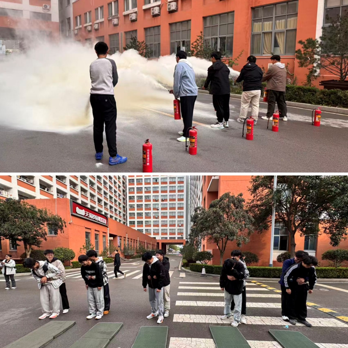 为切实增强师生消防安全意识与应急处置能力,筑牢校园安全防线,10月30日,在学校保卫处的指导下,经济贸易法学院于12号学生公寓楼西侧顺利开展消防应急疏散演练。