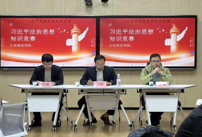 11月27日,山东政法学院成功举办第四届习近平法治思想知识竞赛,旨在普及习近平法治思想,提升学生法治素养与法治思维,营造尊法学法守法用法的氛围,为法治中国建设夯实思想和社会基础,此次活动由法学院承办,法学院副院长丁延龄、法学博士黄峰、李宗翰担任本次活动指导老师。