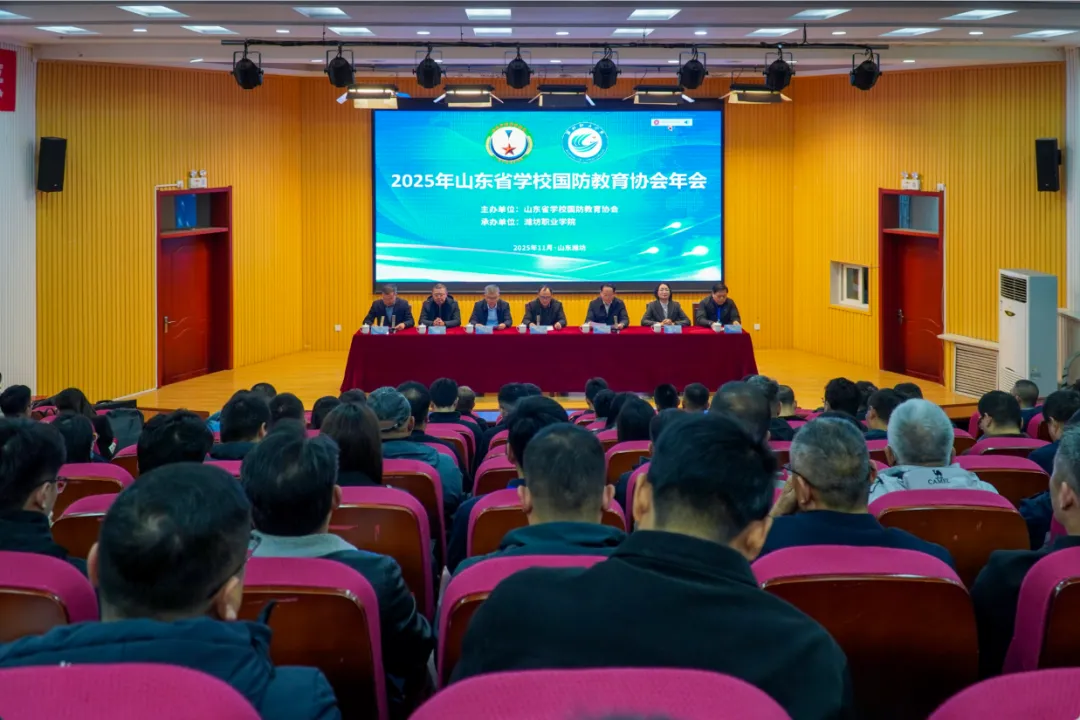 11月28日,2025年山东省学校国防教育协会年会在潍坊职业学院召开。山东省教育厅体育卫生与艺术教育处四级调研员孟梁,潍坊职业学院党委书记王浩,山东省学校国防教育协会秘书长祝金旭等出席会议并讲话。本次年会由山东省学校国防教育协会主办、潍坊职业学院承办,全省共有140所高校参会。我校学生工作处处长、武装部部长安军代表学校参会。