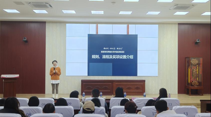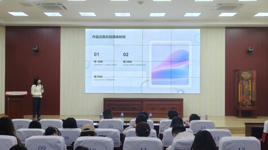 宣推会现场氛围热烈,互动交流踊跃。于晓风对征集活动规则、流程及奖项设置等内容进行全面且细致的解读,并对师生关于投稿、创作、评选等相关疑问,进行现场解答与交流。张晓涵就目前征集活动投稿存在的问题进行说明,逐一解答投稿创作、材料提交过程中存在的疑问,助力参与者理清投稿思路、提升作品申报质量。