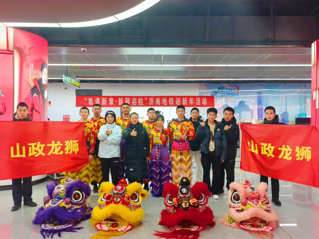 龙腾盛世,狮舞太平。2026年元旦期间,山东政法学院龙狮队受央广总台北京站和济南地铁党群工作部邀请,参加北京市“钟鼓齐鸣 京彩启程”八达岭长城跨年巡游和济南地铁“三线同开”新年庆祝活动,用非遗技艺的精彩表现烘托了新年新气象的喜庆氛围,赢得了游客、乘客的广泛好评。相关活动新闻被“北京晚报”“济南地铁”微信官方号报道。