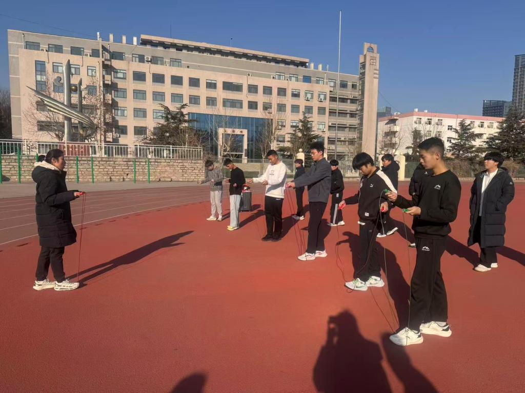 作为山东省首批红色文化传承示范高校,学校始终将国防教育融入人才培养全过程。本次训练严格对标定兵系统最新大纲“五维四型”体能考核标准,聚焦部队训练核心需求,设置1000米跑、立定跳远、实心球投掷、坐位体前屈、跳绳五大关键训练项目,全面锤炼学生力量、速度、耐力与协调性。体育教学部专业教师团队全程驻场,通过动作示范、精准纠错、个性化指导等方式,帮助参训学生掌握科学训练方法,有效突破体能短板,为适应军营高强度训练奠定坚实基础。训练现场,学子们精神抖擞、斗志昂扬,在奔跑与跃动中展现出新时代青年应征入伍、报效祖国的坚定决心。