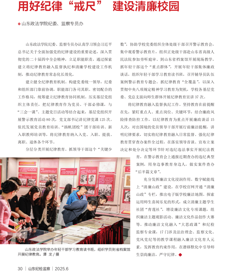《山东纪检监察》2025年第6期刊发《用好纪律“戒尺” 建设清廉校园》。