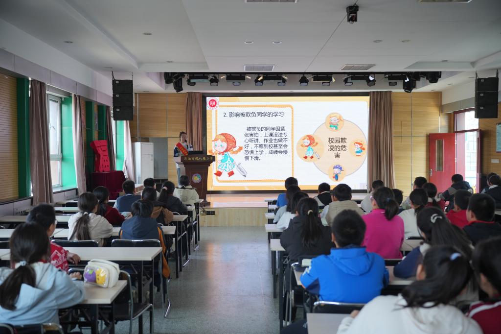 宣讲团紧密围绕《中华人民共和国预防未成年人犯罪法》《中华人民共和国未成年人保护法》等法律法规,教育引导同学们学会明辨是非,抵制不良行为,扣好人生“第一粒法治扣子”。在青春健康教育环节,宣讲团引导学生正确认识情绪变化,学会合理表达与自我保护,为青少年健康成长筑牢心理与安全防线。在防校园欺凌环节,宣讲团通过情景互动与案例分析等形式,教育学生识别并抵制校园欺凌行为,营造安全和谐的校园环境。