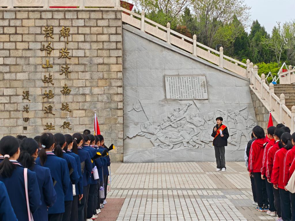 在革命烈士浮雕前,民商法学院大学生法治辅导员用饱含深情的语言,为同学们生动讲述了茂岭山战役和革命先辈们为了解放济南不畏牺牲、英勇奋战的感人事迹。