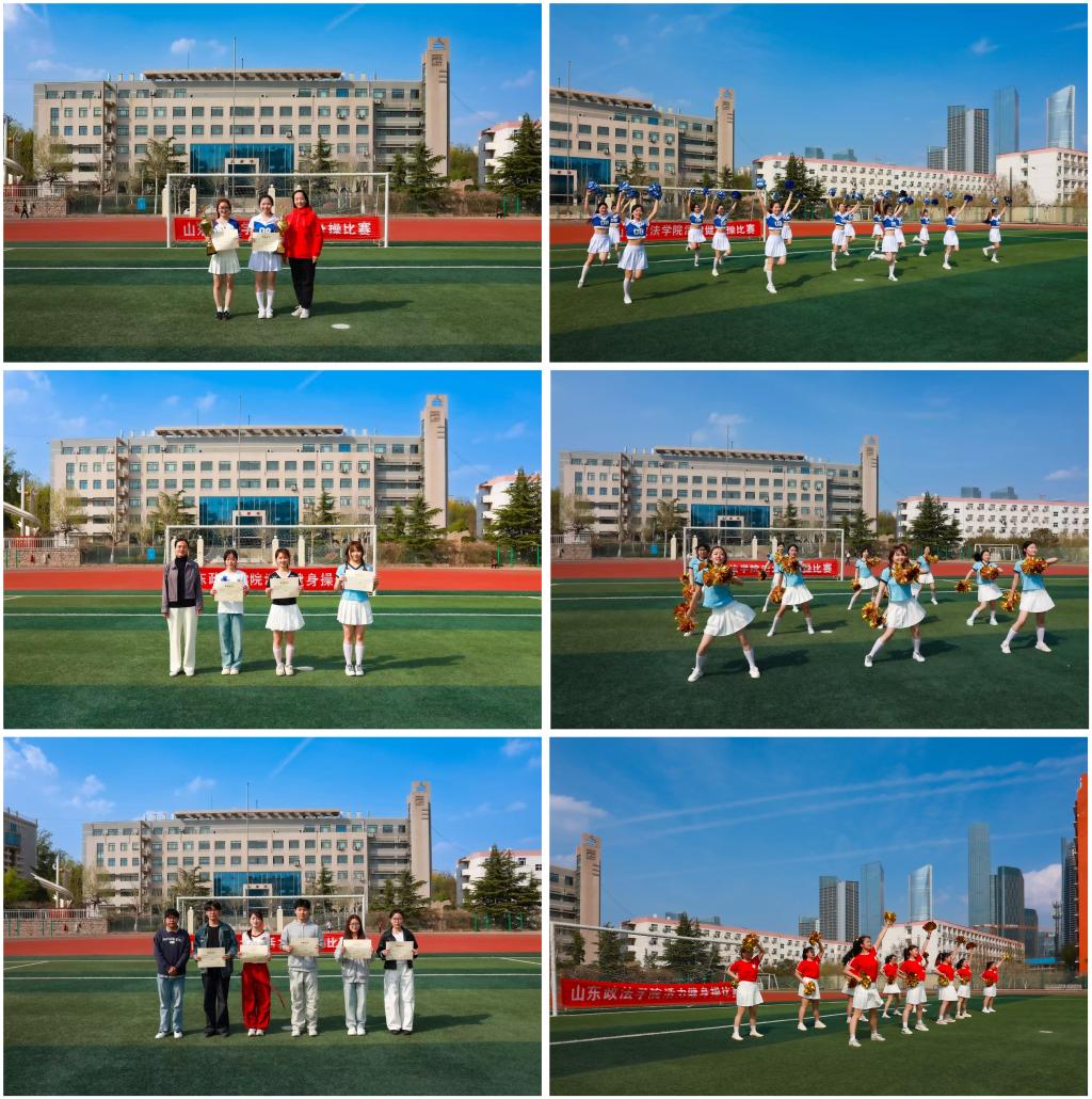 为丰富校园体育文化生活,展现大学生青春风采,4月2日下午, 山东政法学院2026年活力健身操比赛在东田径场顺利举行。本次比赛由体育教学部牵头组织,来自10个院系的代表队齐聚赛场,150余名运动员以饱满热情、昂扬姿态同场竞技。经比赛评委评判,传媒学院、商学院代表队荣获一等奖:刑事司法学院、经济贸易法学院、民商法学院代表队荣获二等奖:公共管理学院、法学院、警官学院、外国语学院、网络空间安全学院代表队荣获三等奖。
