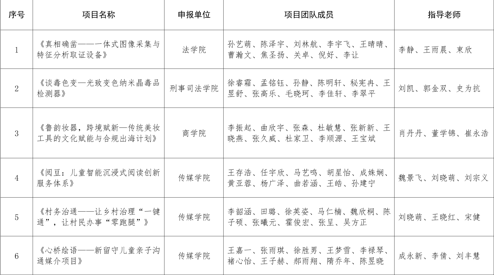 根据团省委《关于举办第十五届“挑战杯”山东省大学生创业计划竞赛的通知》,我校组织开展了第十五届“挑战杯”大学生创业计划竞赛校赛和省赛选拔赛,根据比赛结果和专家推荐意见,确定以下6个项目代表学校参加省赛,现予以公示: