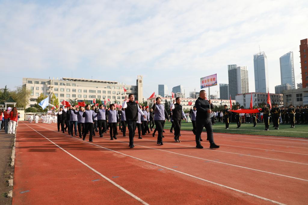 开幕式上旗帜飘扬,气氛热烈。八时许,激昂旋律响起,国旗方队率先入场,步伐铿锵、容光焕发;红旗方队精神抖擞,紧随其后。由各学院、部门及校友代表组成的14支方队依次整齐入场,队员们步伐矫健、口号嘹亮,生动展现了山政人朝气蓬勃、锐意进取的精神风貌。