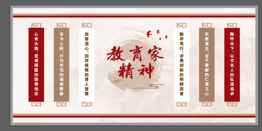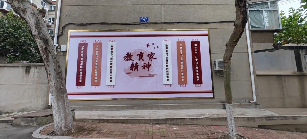 为大力弘扬教育家精神,涵育校园师德文化,近日,我校在刚健路九号教工宿舍楼打造教育家精神文化墙,让教育家精神可感可及、入脑入心。
